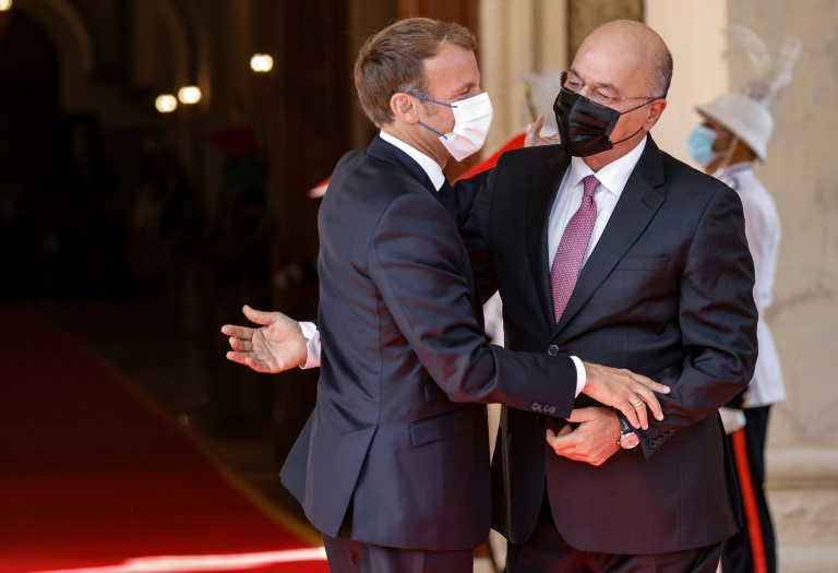 Iraqi President Barham Saleh (R) welcomes his French countepart Emmanuel Macron in Baghdad on August 28 © AFP / Ludovic MARIN