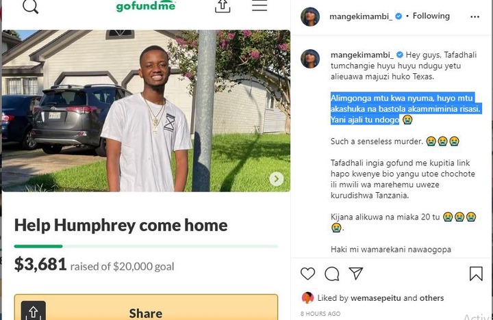 Kimambi urged fellow Tanzanians to help contribute a total of $20,000 to get the body home. So far they have managed to raise $4000.