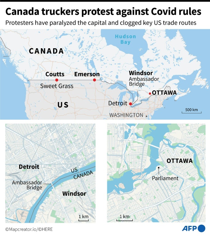 Windsor (Canada) (AFP), Feb 12 – Truckers snarling a key bridge between Canada and the United States over vaccination rules defied a judge’s order to leave Friday night, with snowballing protests piling pressure on Prime Minister Justin Trudeau.