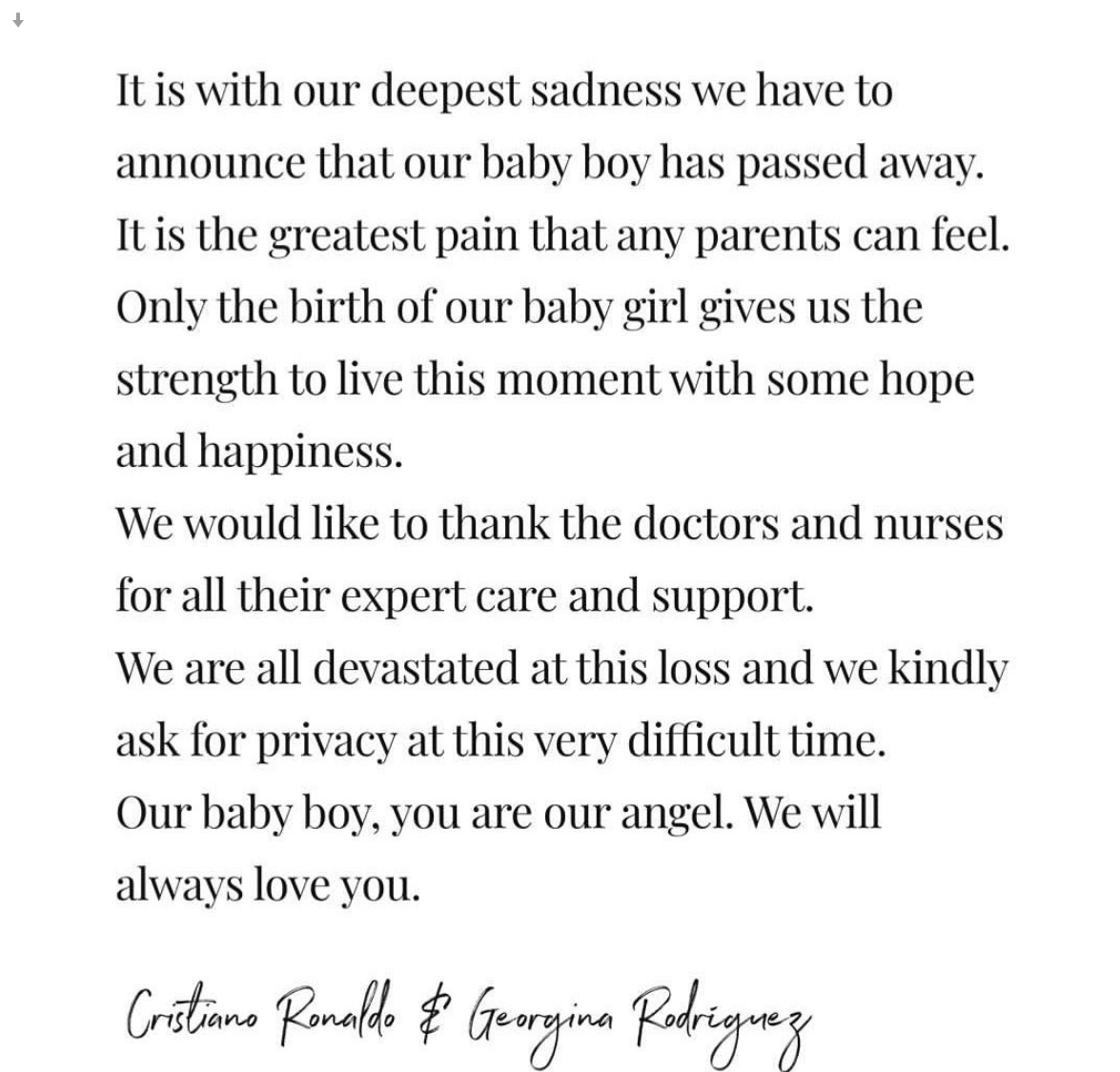 Cristiano Ronaldo reveals one of his babies died during birth : The standard Sports