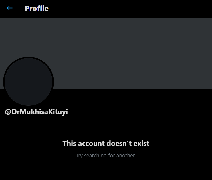 The handle that was formerly ascribed and verified under his name “Dr Mukhisa Kituyi” went dark with Twitter reporting: “This account does not exist”.