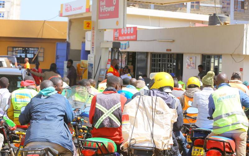 Boda boda riders and motorists line up to fuel at Shell Petrol Station in Kisii town on March 31, 2022. [Sammy Omingo, Standard]