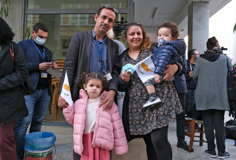 A Cypriot Maronite family waits for Pope Francis to arrive near Nicosia’s Maronite Cathedral of Our Lady of Grace © AFP / Amir MAKAR