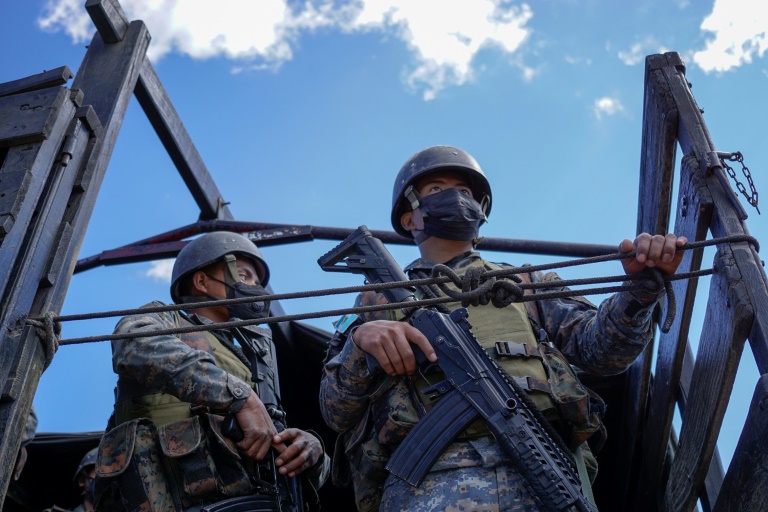 Soldiers stand guard close to a dirt road leading up to the village of Chiquix in western Guatemala where 13 people were killed in a massacre © AFP / Johan Ordóñez