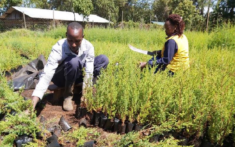 Farmers from Geta village, Nyandarua County, preparing seedlings in Aberdare Forest. [Antony Gitonga, Standard]