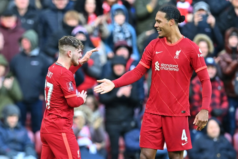 Harvey Elliott (left) scored on his return from a long-term injury for Liverpool © AFP / Paul ELLIS