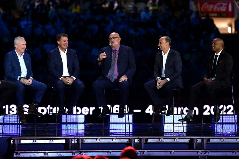 Allan Border, Mark Taylor, Merv Hughes, Nasser Hussain and Brian Lara at Shane Warne’s memorial service © AFP / William WEST