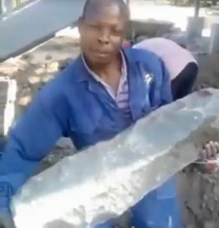 The guy is seen holding a huge construction stone at a construction site to show how some men sweat only for slay queens to chop it all.