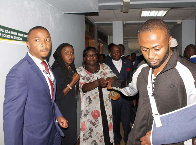 was tortured in Kamiti and the gunshot wound on his left arm is yet to be