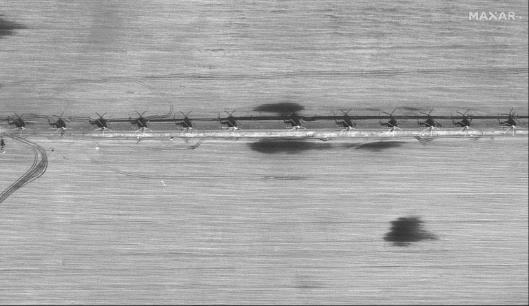 This Maxar satellite image taken and released on February 28, 2022, shows a close up view of a deployment of Russian armored equipment southeast of Ivankiv © Satellite image ©2022 Maxar Technologies/AFP