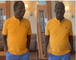 Dressed down in a pair of blue Khaki shorts and a yellow polo shirt, Raila appeared jovial and smiley insisting that he was in fine fettle.