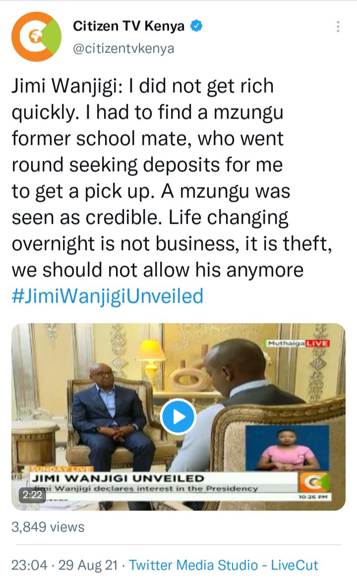 Wanjigi, who had an interview with Citizen TV, left many surprised after opening up of how he made his billions.