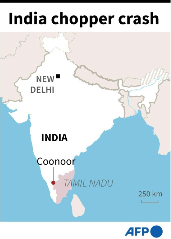 Coonoor (India) (AFP), Dec 8 – Indian defence chief General Bipin Rawat was among 13 people killed in a helicopter crash on Wednesday, raising questions over the future of military reforms he was leading.