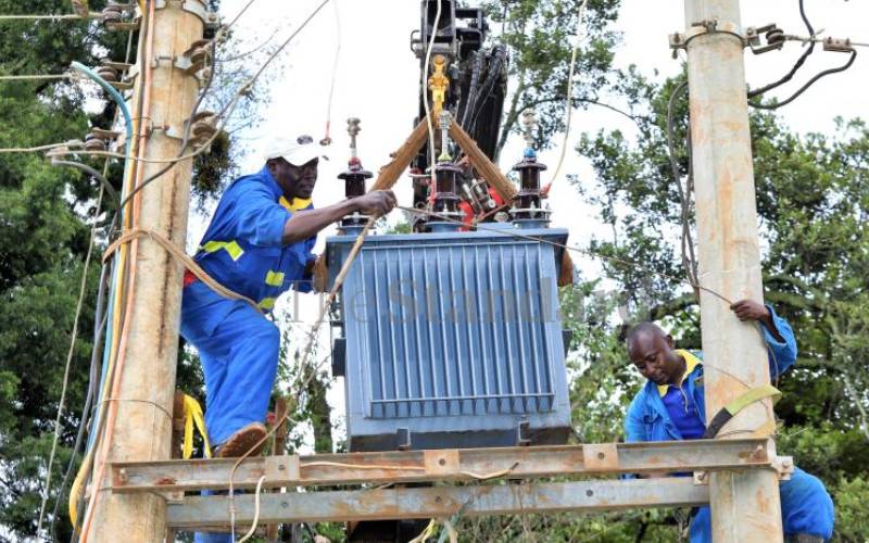 Kenya Power replacing a transformer in Kanyange, Othaya, Nyeri County. May 5, 2022. [Mose Sammy, Standard]