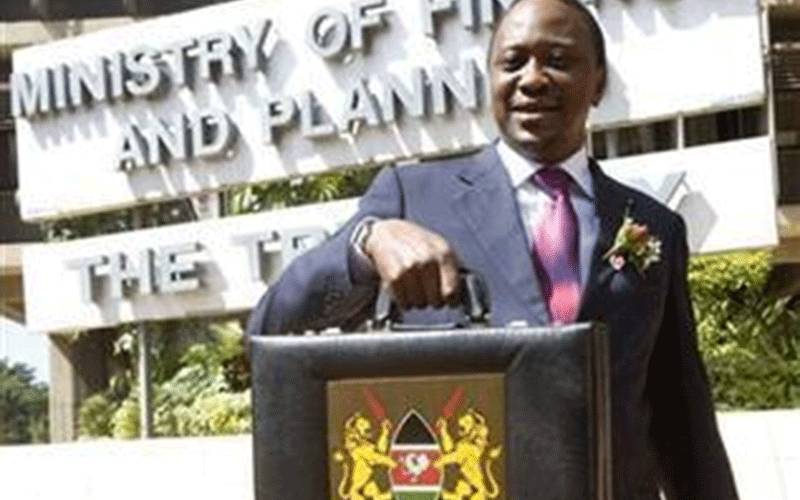 President Uhuru Kenyatta holding the Budget briefcase when he was the Finance Minister.