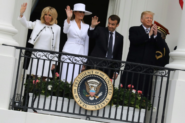 April 2018: French President Emmanuel Macron and his wife Brigitte received a red-carpet welcome from US President Donald Trump and First Lady Melania. /AFP.