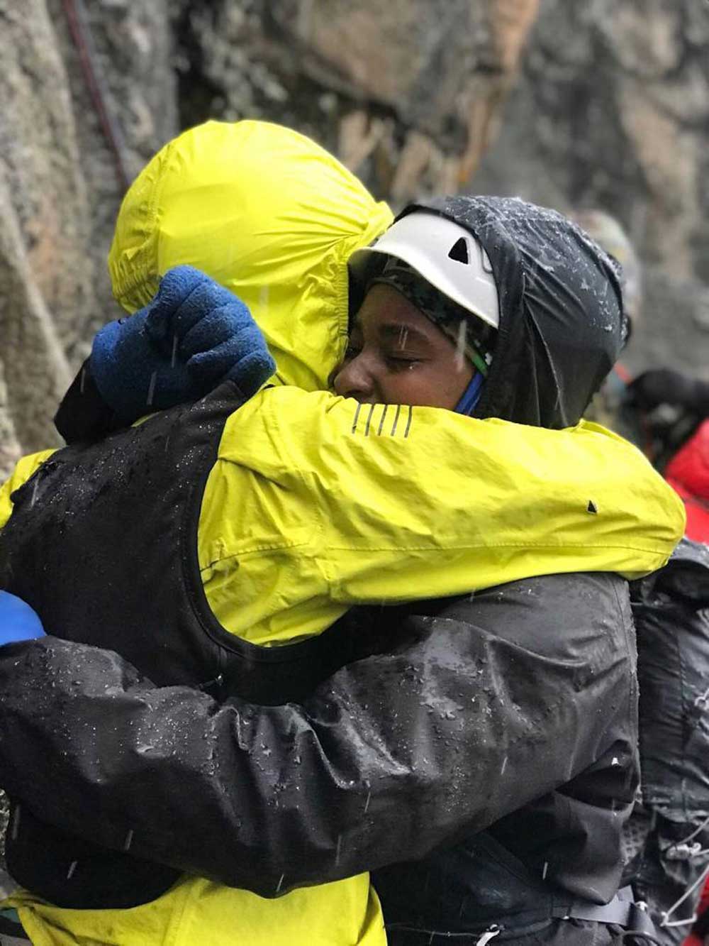 After summiting, the weather drastically changed and it began to snow, giving the team a difficult trek down the mountain. Due to the weather, Rosemary and Nana waited for conditions to improve before resuming their journey down to the base.