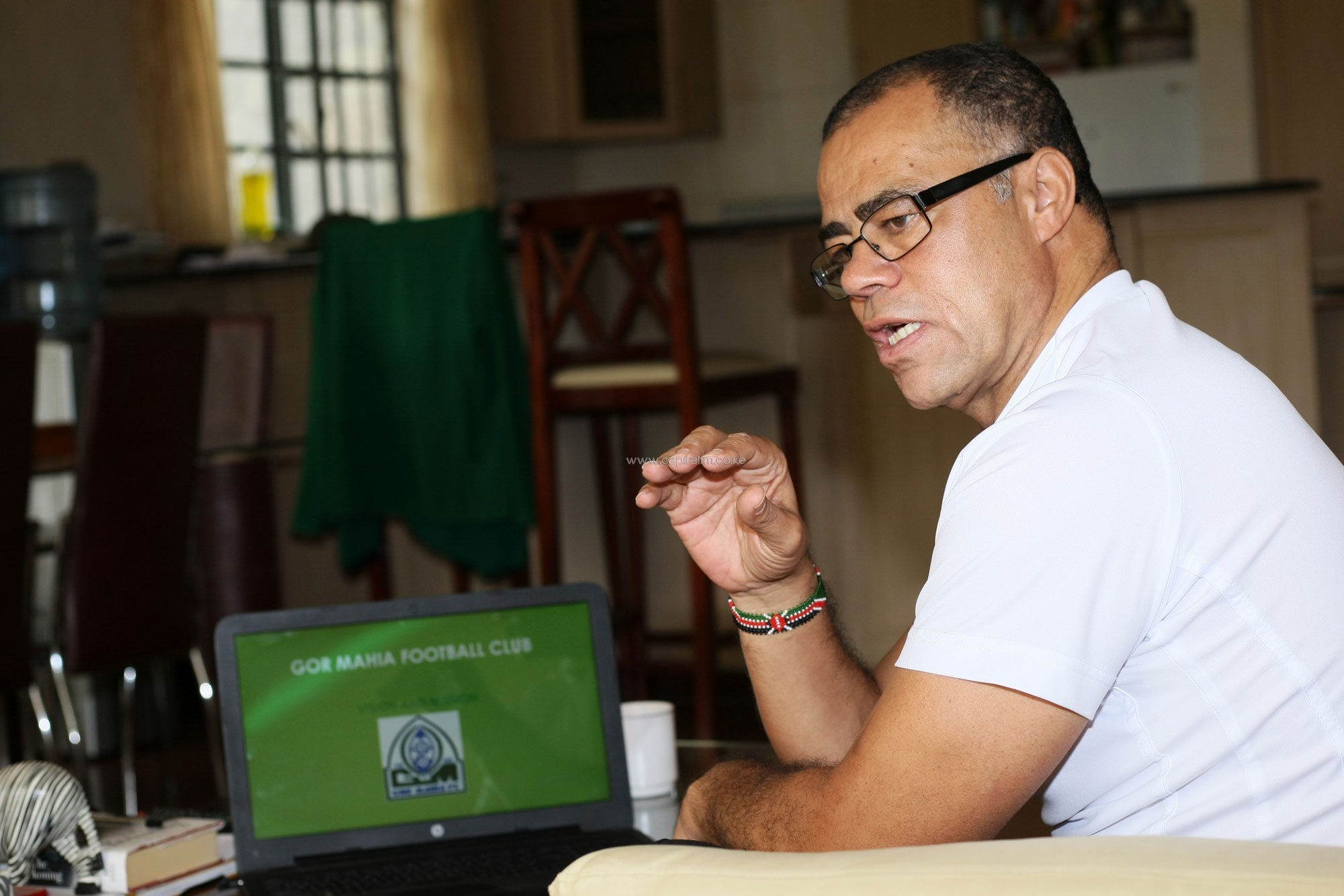 Gor Mahia head coach Steve Polack shows his Kenyan and Ghanaian affiliation during an interview with Capital Sports. PHOTO/Raymond Makhaya