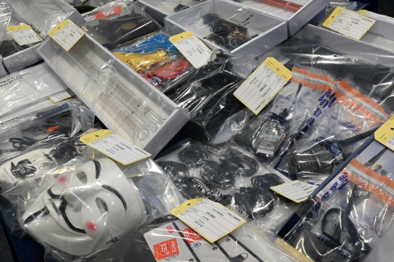 Hong Kong police seized explosive materials, bomb building manuals, cell phones, and cash and arrested nine suspects on suspicion of “conspiracy to use explosives for terrorist activities” © AFP / Peter PARKS