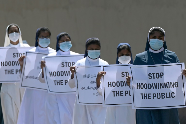 Most demonstrations have been peaceful, with Catholic clergy and nuns led by Sri Lanka’s Cardinal Malcolm Ranjith leading a procession in the capital © AFP / Ishara S. KODIKARA