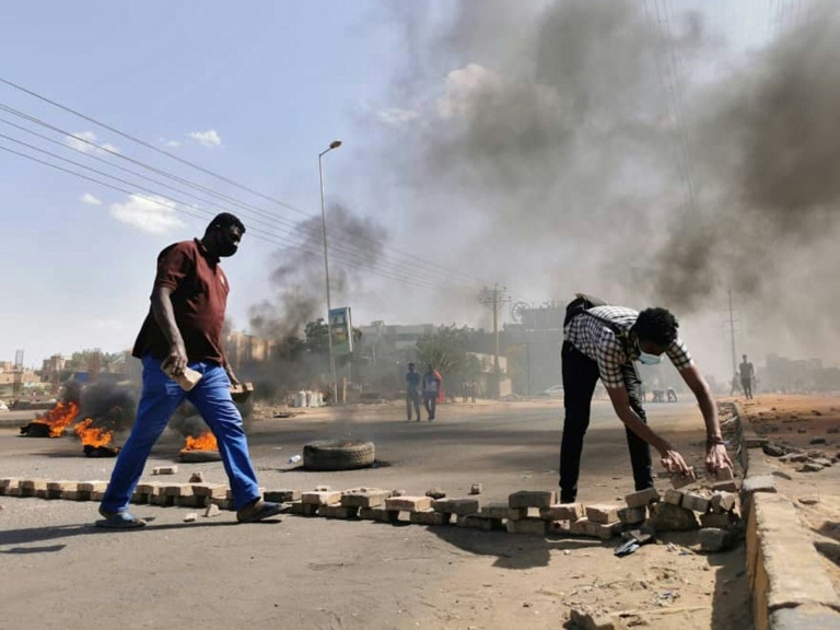 Sudanese anti-coup protesters block a street in the capital Khartoum on October 30 © AFP