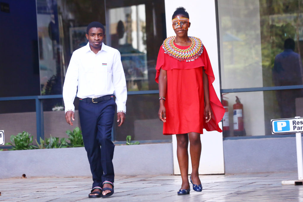 The resplendent attire that was locally made by women from the Ushanga Kenya Initiative is blended with traditional beads and jewellery representing various Kenyan culture.
