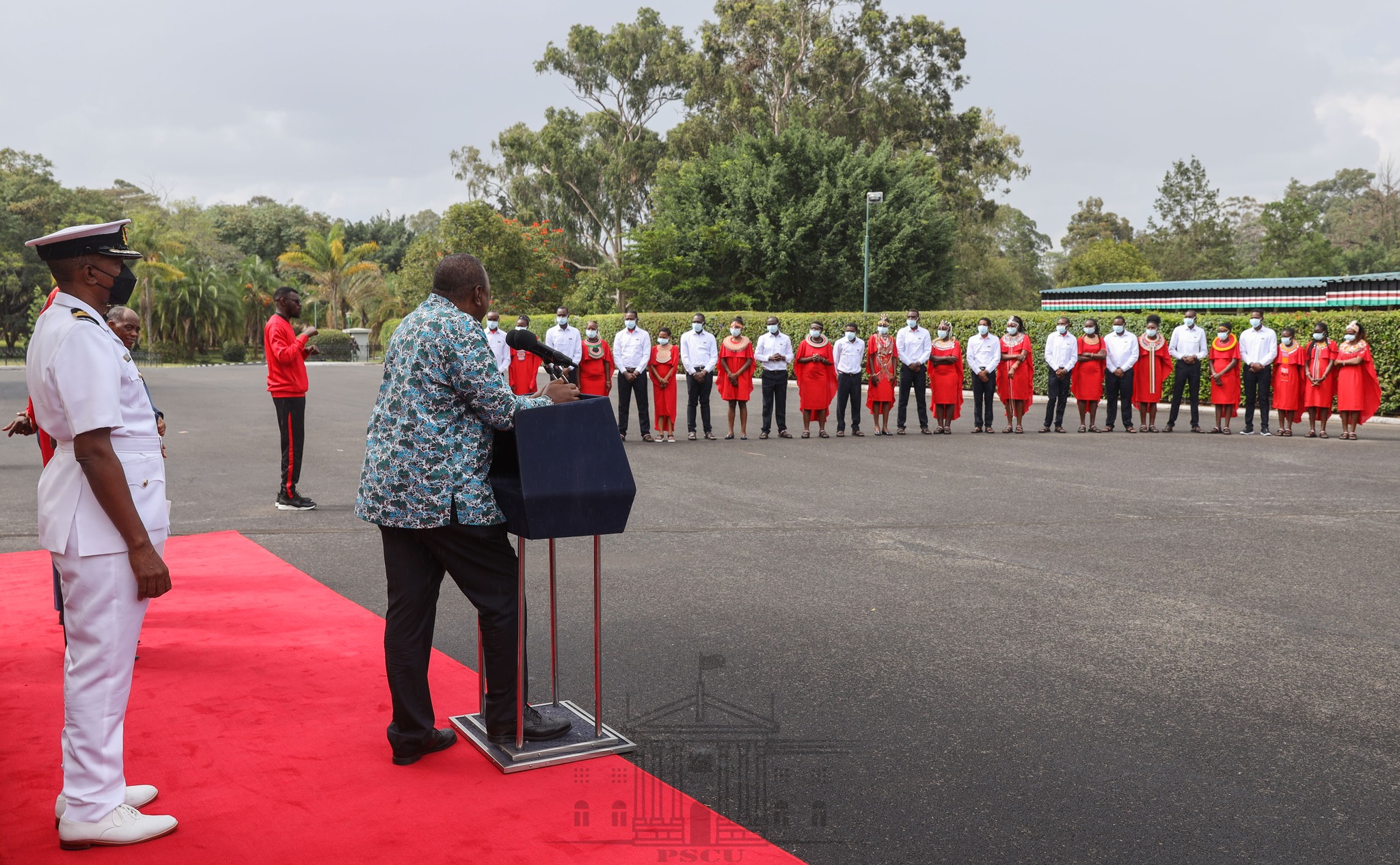 “We will ensure you are able to meet all your needs when you are travelling. You look absolutely magnificent in your outfit and I don’t think there will be another country in the world that will look beautiful and as handsome as you look,” President Kenyatta heaped praises on the team before handing them the flag.