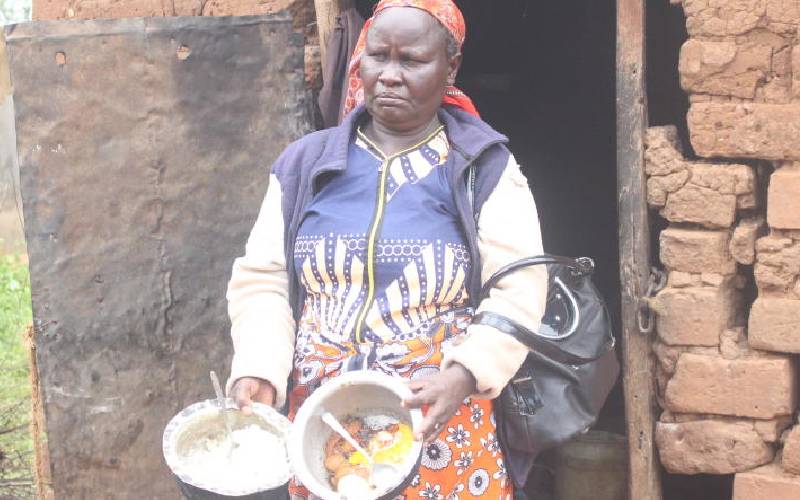 Rose Ndungwa displays Sufuria’s containing eggs and Ugali meal. [John Muia, Standard]