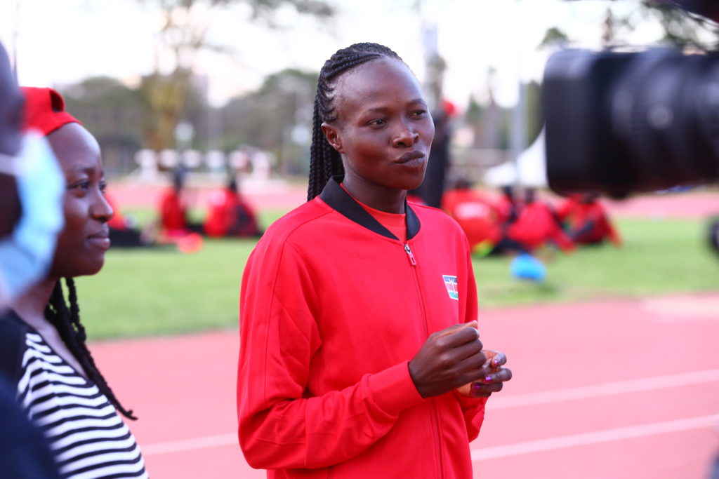 Sign Language Interpreter Pamela Wango during training with the Deaf Athletics team at the Moi International Sports Center Kasarani. Photo/KELLY AYODI