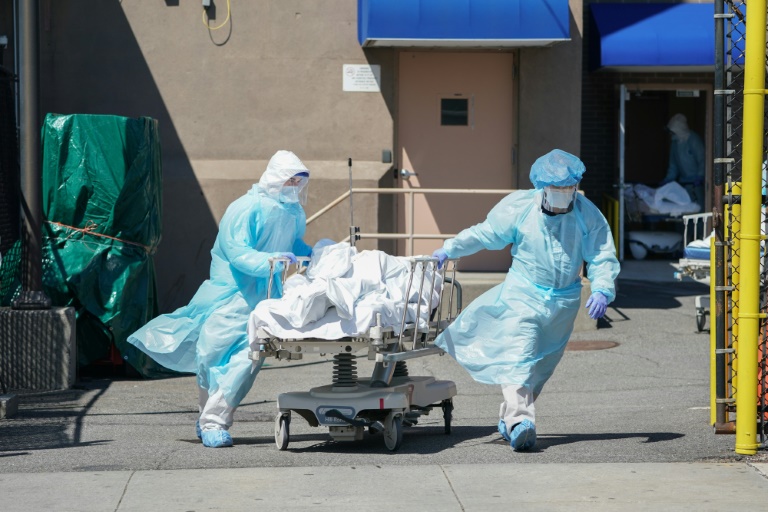 Bodies are moved to a refrigeration truck serving as a temporary morgue in New York, the main focus of the US outbreak, with more than 4,750 deaths © AFP / Bryan R. Smith