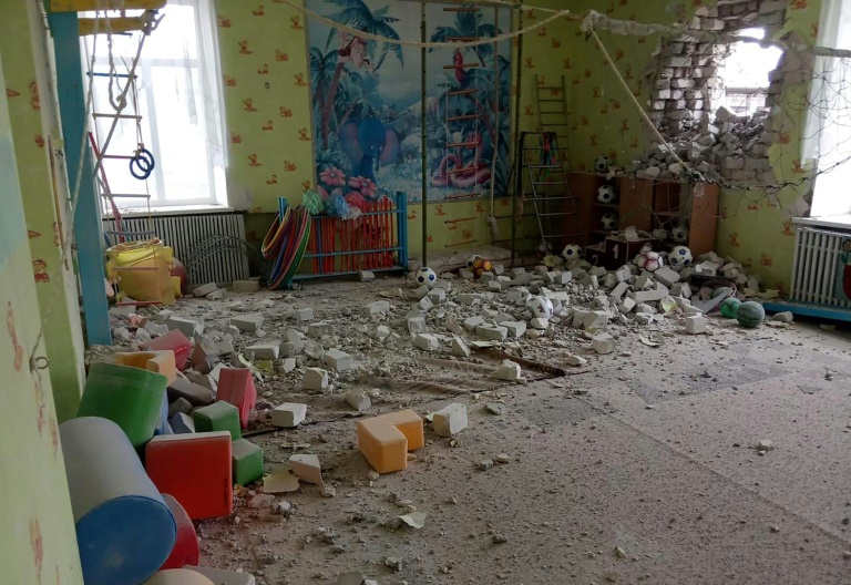 Ukraine accused separatist forces in the east of hitting a kindergarten in a wave of intense shelling © Ukrainian Joint Forces Operation press-service/AFP / Handout