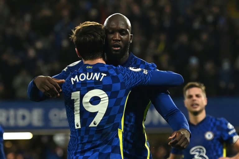 Chelsea forward Romelu Lukaku (right) celebrates after scoring against Brighton © AFP / Glyn KIRK