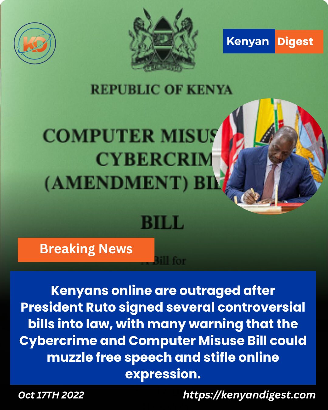 Ruto signing the computer misuse bill