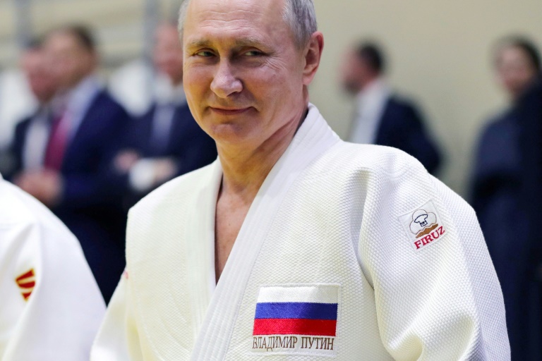 Out: Putin takes part in a training session with members of the Russian national judo team in Sochi in 2019 © SPUTNIK/AFP/File / Mikhail KLIMENTYEV